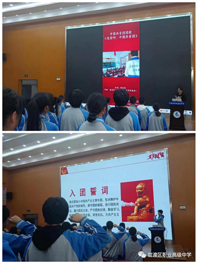在陈晓艺老师的带领下,参会学子高举右手、紧握右拳,郑重重温入团誓词:“我志愿加入中国共产主义青年团,坚决拥护中国共产党的领导,遵守团的章程,执行团的决议,履行团员义务,严守团的纪律,勤奋学习,积极工作,吃苦在前,享受在后,为共产主义事业而奋斗!”
