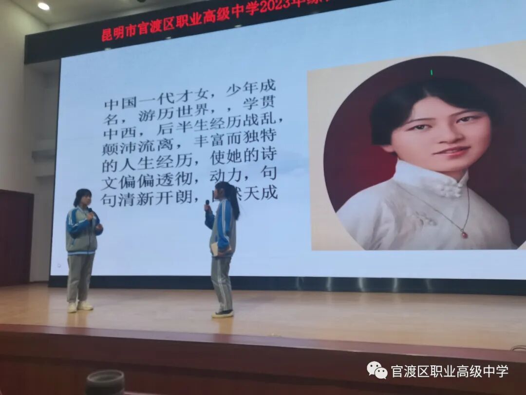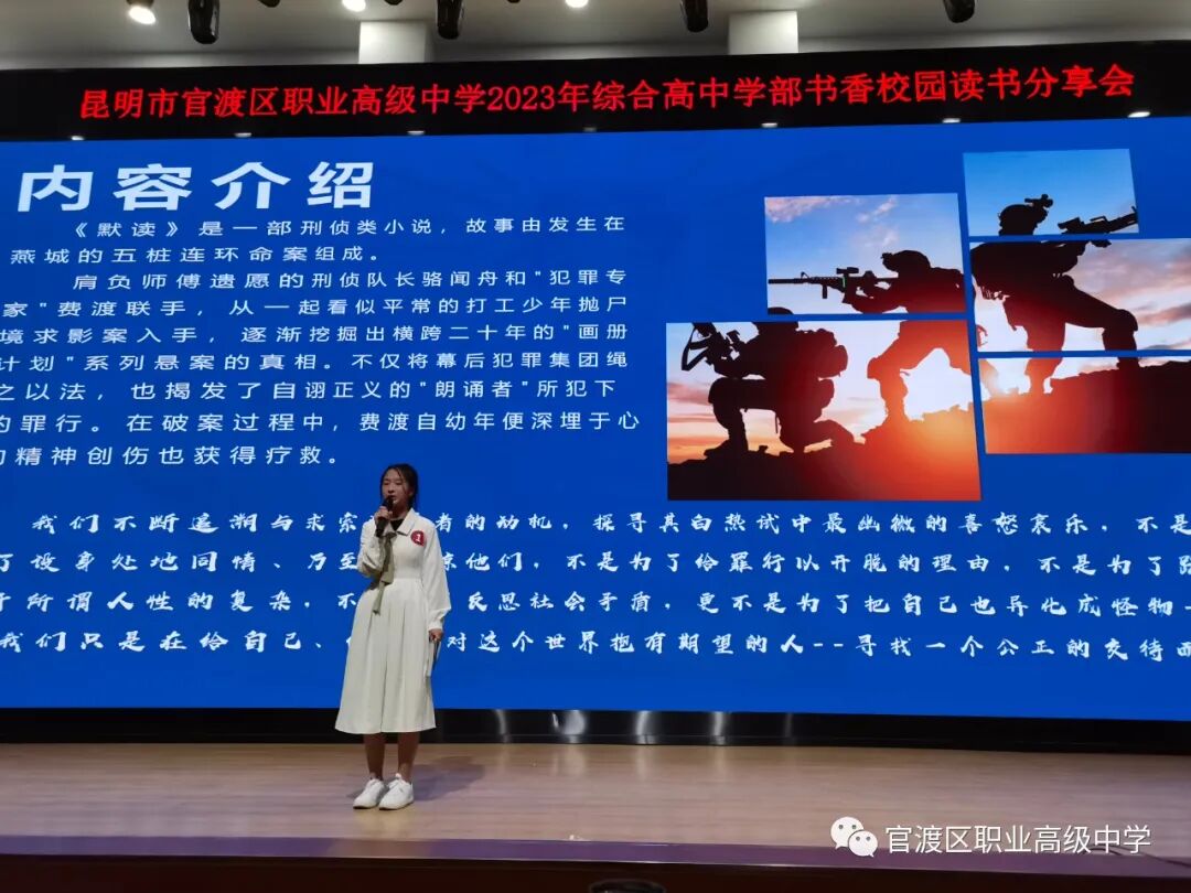 最是书香能致远,读书之乐乐无穷。好书,像长者,谆谆教导;似导师,循循善诱;如朋友,心心相印。为进一步激发学生读书热情,让同学们爱上读书,享受读书,从读书中获得新知,活跃校园文化,营造清风缕缕满校园的书香氛围。官渡区职业高级中学综合高中学部在3月21日下午开展以“阅读润泽生命、书香点缀流年”为主题的校园读书分享活动。春色染花花更红,经典品读读更香,本次读书节朗诵比赛,在冷建文部长等老师的精心策划下,全学部11个班级积极参与、认真准备,严肃对待。由杨秋副校长、王文芳老师及各班班主任担任评委。参赛作品类型丰富、题材多样。《铁路边的孩子们》是一段充满诗意和激情的心灵成长故事,书中展现的生活智慧,人性中质朴的善良以及孩童们在逆境中迸发出惊人的智慧都给我们带来了极大的触动;《风雨哈佛路》则为迷茫的人生指明前进的方向;《平凡的世界》让学生与书中的每一个人物一起见证他们于平凡中铸就自己的不平凡,能够直面以后生活中的各种苦难,让生命之花开得绚丽,正如书中所说:“只要春天不死,生命就不死,就会有迎春的花朵年年岁岁开放”。选手们以积极向上的读书热情、饱满的精神、声情并茂的朗诵道出了对祖国的爱、对苦难的坚强、对自身青春年华的奋斗与拼搏。琴声诗韵醉花香,三月春光读书忙,诗意中国,源远流长,与时光作伴,与世纪回想,诵读经典,让中华文化展现永久魅力,让经典诗词唱响官职校园。