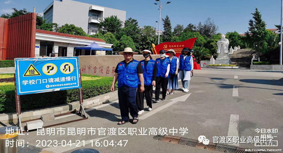 为了给学生创设安全、文明、有序的放学环境,充分发挥党员老师在学校管理中的先锋模范带头作用,我校党支部开展了“党员护学岗”活动,真正让党员先锋模范作用接地气、入人心。活动开展后,全体党员老师积极参与,亮出身份、忙碌在护学路上,形成一道“暖心护学”的靓丽风景线。在第9周的护学岗志愿服务中张毕祥书记、林玉芝部长带领和春燕老师、刘宝倩老师、李丽莎老师身穿党员蓝色马甲,分列在校门口的路边。协助学校共同维持秩序,疏导校门口的车流和人流,提醒在校门口等待的家长不要扎堆,对校门口和周边道路的交通秩序进行引导,提醒过往车辆和家长遵守交通规则,注意避让学生,引导学生在安全区域内行走。党员护学岗是官渡区职业高级中学党支部长期坚持的工作,是落实党史学习教育“学党史,悟思想,办实事,开新局”的要求。从教书育人的三尺讲台到护学的志愿服务,变化的是岗位,不变的是热情、坚守、初心和使命。我校把“为师生家长办实事”作为党员学习教育的出发点和落脚点,党员老师们用朴实的行动、真诚的付出诠释着一份责任、一份爱心、一种社会正能量;以“逆行者”的姿态奋战在护学的一线,用行动践行初心,用汗水书写担当,用行动传递精神,用责任和坚守共筑学生交通安全的坚固防线。