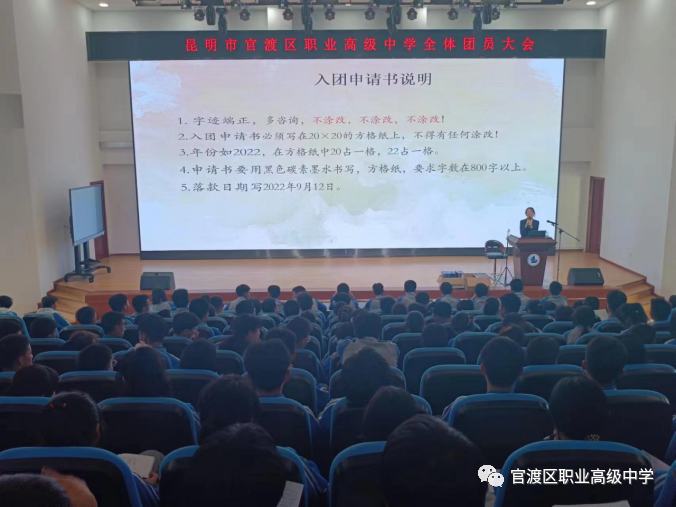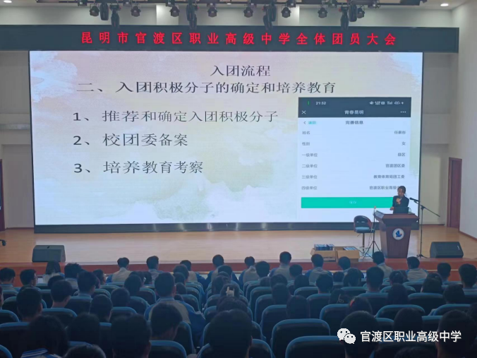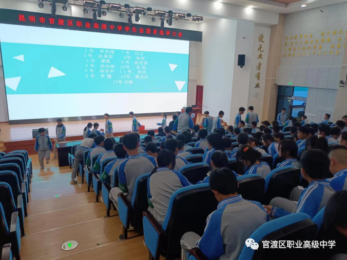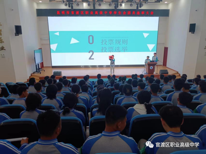 昆明市官渡区职业高级中学第一次全体团员大会及学生会干部选举会议。
