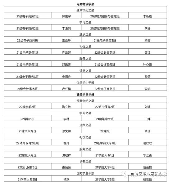 德育处讯:四月份以来,德育工作稳步开展、活动丰富多彩,按照班级自荐、学部推荐、德育处审查的程序,涌现了一批先进个人和先进集体。鉴于此,2023年5月8日上午,官渡区职业高级中学特举行“榜样引领 履践致远”——四月争先创优表彰暨第十三周升旗仪式。