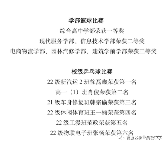 本次球赛,得到了学校各级领导、各学部班主任和任课老师的大力支持。赛前,体育组在学校德育处的指导下,召开专题会议,研究制定方案,安排比赛日程,指导训练学生;六大学部精挑细选,认真组建参赛队员,充分展现了官职团结向上、勇于拼搏的精气神。
