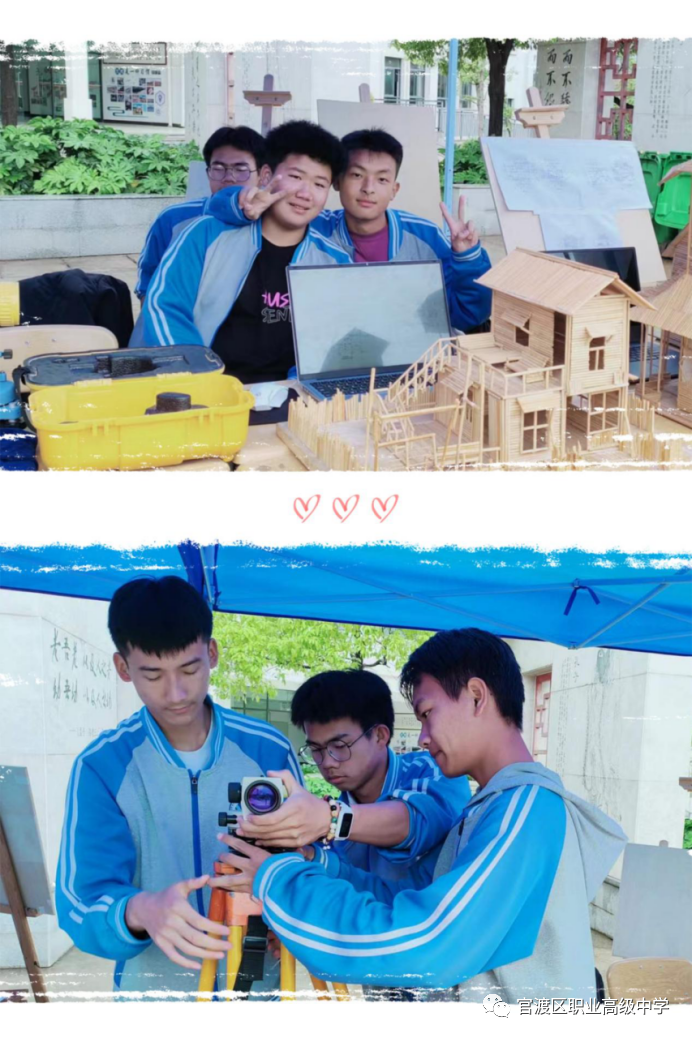 第二个部分是周德志老师带领学生们精心布置的建筑测量器材及实作展示、建筑CAD现场制图展示及建筑制图图纸展示,看着这一个个建筑模型,仿佛幻化成一幢幢高楼大厦,带领我们走进向往的生活。最后还有计娜老师负责的1+X 幼儿照护实训器材及模拟实操展示,这也是学前专业的重要技能。学生们通过认真学习,取得1+X幼儿照护职业技能等级证书,也是他们走向社会的敲门砖和试金石。