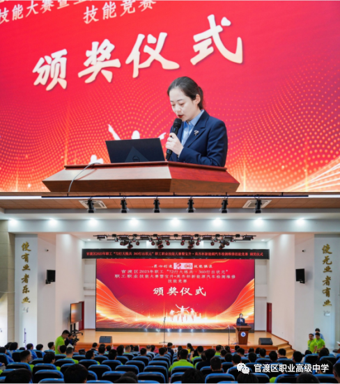 此次颁奖仪式由昆明市官渡区职业高级中学校长助理、园林汽修学部部长黄孜君主持,颁奖仪式共有九项议程。