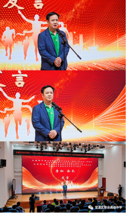 首先,由官渡区人大常委会副主任、官渡区总工会党组书记、李建勋主席致辞,李主席代表区总工会向本次竞赛圆满成功表示热烈的祝贺,对竞赛的组织单位和参加竞赛的各支队伍及为竞赛付出辛勤劳动的全体工作人员表示衷心的感谢。结合此次竞赛李主席提出了殷切希望,一是把此次技能竞赛作为一个新的起点,做好总结宣传工作,此次竞赛是汽车行业弘扬工匠精神的一次体现,也是产教融合校企合作的成功的案例,是整个社会对低碳环保、绿色出行的要求的体现,进一步营造了新能源汽车发展及职业教育发展的良好社会氛围和方向。我们要做好宣传,善于总结,提升竞赛的影响力,把竞赛成果向市场转化为全面推进官渡区社会主义现代化建设贡献智慧和力量。二是要深刻认识到,学习和掌握技能不仅是我区经济发展、社会进步的需要,更是我们广大职工实现自身价值、发展自己事业的需要。三是各位选手要以岗位为舞台,大力鼓励劳模精神、劳动精神和工匠精神,增强创新意识,推进官渡区汽车检测维修行业高速高速的发展,为实现全区当好排头兵,建设新中心、引领现代化的奋斗目标打下坚实的基础。