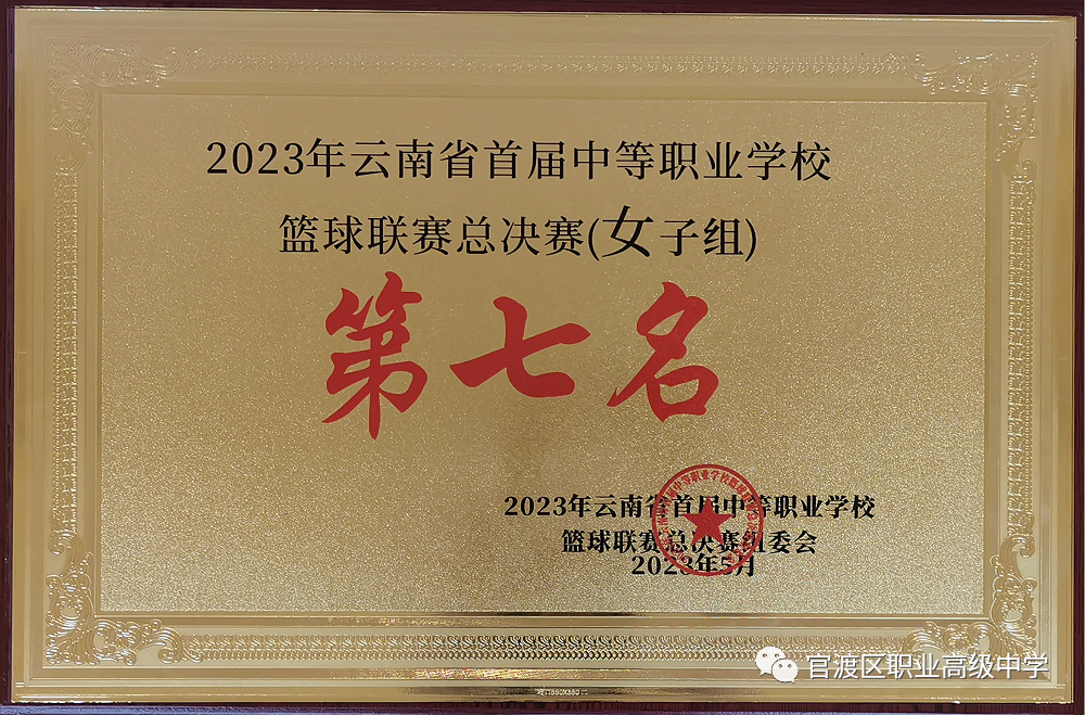 我校荣获2023年云南省首届中等职业学校篮球比赛女子组第七名