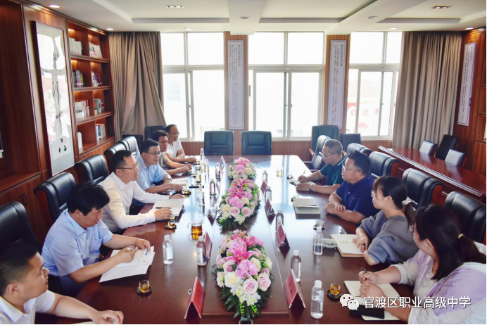会上,张毕祥书记首先介绍了学校的办学历史和发展历程,学校在三任校长的带领下,从合校到建校到强校一步一步走来,成为国家级重点中等职业学校、国家中等职业发展改革示范学校、云南省双优学校,学校未来将努力办成国家级双优学校、争取集团化发展,成为职业教育的一张亮丽名片。高陵区职教中心薛东升校长介绍了高陵区职教中心的办学规模、发展特色、主要专业及办学成果,并针对校企合作等重点问题与我校与会领导进行了交流。陈灵常委对学校给予很高的评价,他表示官渡职中的校园文化建设、校企合作模式、学生管理模式等诸多方面非常值得学习,此行对高陵区职业教育发展带来很多的启发。陈灵常委介绍了高陵区的建县历史、发展历程、资源优势、发展规划,他讲到:“高陵区政府对教育工作十分重视,区里刚刚召开了全区教育质量发展大会,区委区政府把做好教育、医疗当作最大的营商环境来抓,尤其依托高陵区工业产业的优势,做好职业教育对于推动经济发展有着极为重要的作用。”
