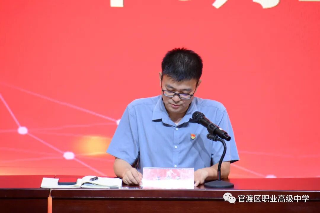 庆祝活动最后一项议程,由王竞元书记发表讲话。回望过去,困难重重,但成绩喜人,官渡高考取得新突破。展望未来,希望广大党员干部要厚植家国情怀,以奋斗的姿态激昂青春力量,以螺丝钉的精神助力昆明市的发展;牢记殷殷嘱托,书写绚丽华章。牢记立德树人根本任务,为党育人、为国育才,培养担当民族复兴大任的时代新人;凝心聚力,务实笃行,提质增速,砥砺前行。围绕“教育体育资源扩优年、教育教学质量提升年、教育体育服务提质年”三个行动统筹推进,关注教育体育高质量发展。相信在全区教育体育系统各级党组织和广大党员共同努力下,最终一定能够迈上新征程!