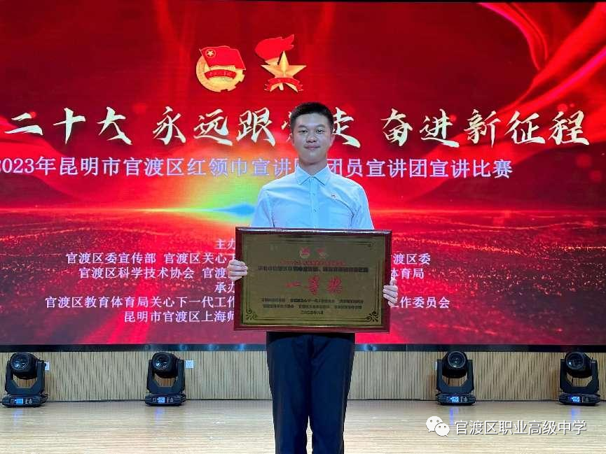 2023年6月29日至30日,来自昆明市官渡区72所学校的少先队、团员代表汇聚上海师范大学附属官渡实验中学进行宣讲比赛。经过激烈的角逐,我校团员代表梁思垚的演讲《少年自当奋楫 征途尽是春山》荣获一等奖。