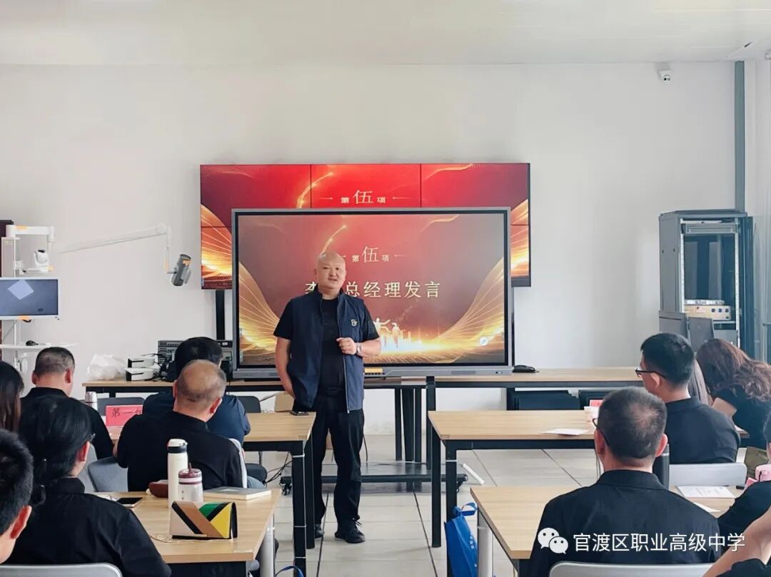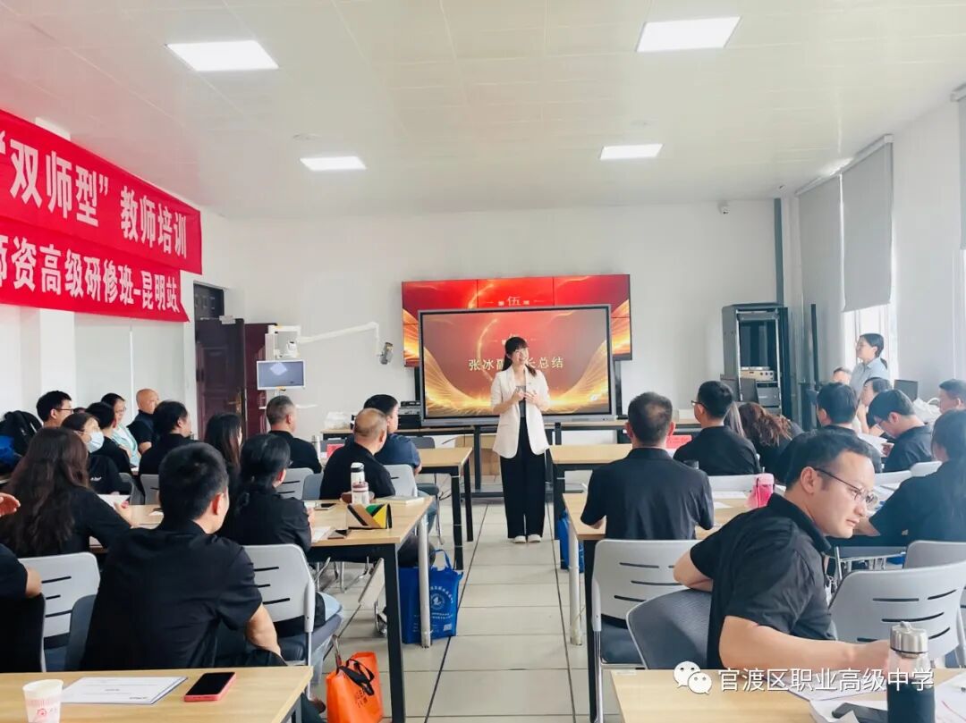 以学赋能,砥砺奋进。经过7天紧张又充实的培训,7月14日上午,由昆明市教育体育局主办,昆明市双师型教师培训基地·昆明市官渡区职业高级中学承办的2023年昆明市职业院校“双师型”教师培养培训结业典礼在官渡职中举办。活动由科研处郑丽婷主任主持,官渡职中张冰副校长、云南玛数科技有限公司李翔总经理、信息技术学部林玉芝部长和全体学员出席了本次活动。