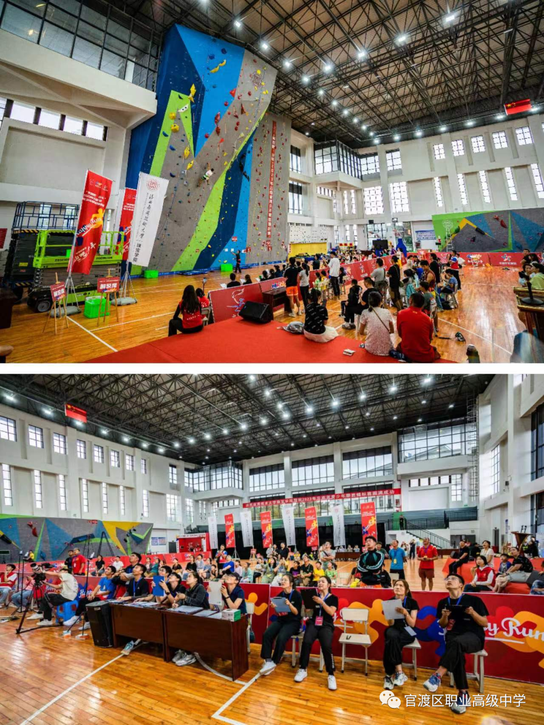 本次比赛设速度赛;难度赛;攀石赛;难度、攀石两项全能赛,运动员们在比赛中不断挑战自我。经过两天的激励角逐,官渡区职业高级中学攀岩队勇攀高峰,问鼎苍穹,在本次比赛中取得了优异成绩!
