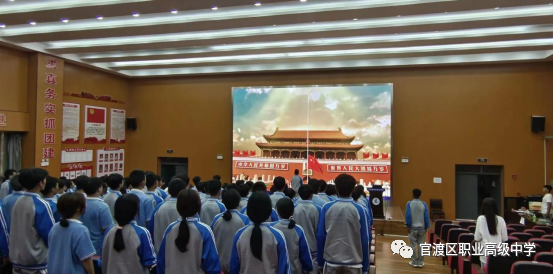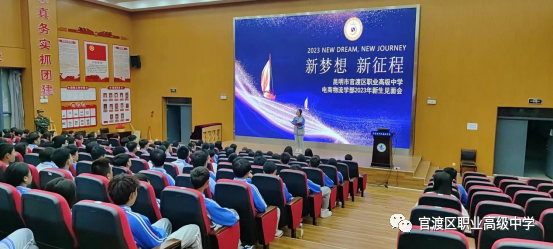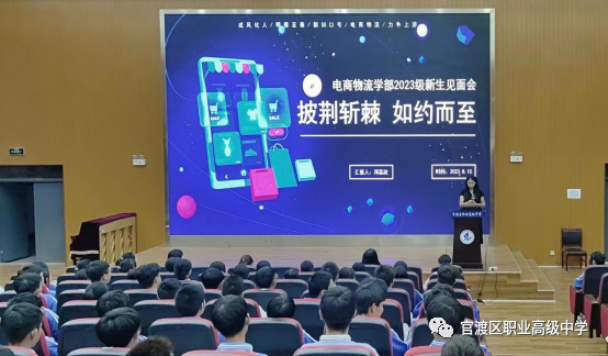 在全体师生齐唱国歌后,本次电商物流学部新生见面会正式拉开帷幕,教学干事邓蕊欣老师从学校、学部概况、学部文化、学部亮点四个方面向同学们全面展示了电商物流学部的魅力,现场同学们热情高涨,最后邓老师传达了刘凤琴部长对2023级同学们的美好期望和真挚祝福“希望通过三年的学习,同学们能在官渡职中获得一张通往大学的门票或取得一份高素质技术技能型人才的合格证;在三年的学习中度过一段充实的岁月,获得一颗人文素养的种子;离开官渡职中后留下一份温馨的记忆。”