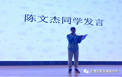 进而,大屏幕上相继出现三位学部优秀学子——毕俊同学,陈文杰同学和张孝嘉同学。在视频中新生们看到了学长的勤奋努力,看到了老师对他们给予的肯定与支持,看到了他们自身的专业技能和自我管理能力。视频中也展示了他们在校期间掌握的专业技能和取得的优异成绩与荣誉。三位优秀学子也分别上台发言,为新生分享了他们的心路历程,告诉新生如何靠自己成为更优秀的自己......慷慨激昂的演讲让新生们激情澎湃,气氛走向高潮。三位学者正能量满满,他们熠熠生辉,既树立了榜样,又把工匠精神传递了给大家。