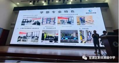 接下来由付珍珍老师进行学部专业介绍,介绍信息技术学部各个专业的学习内容和专业优点,介绍了学部专业特色以及学部的所有实训室,展示了学部近三年在技能大赛中获得的奖项,激发了同学们的好奇心与奋进心。