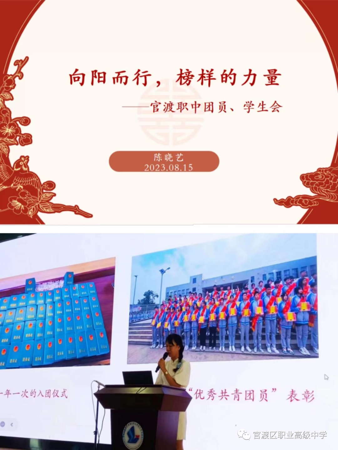 校团委书记陈晓艺以《向阳而行 榜样的力量》为主题给会场新生介绍我校数名优秀学子的励志事迹,来激励他们树立正向的发展观,促进他们成长成才。榜样好比人生的坐标,学习成功的向导。它带给我们的是无尽的锐气和朝气,是必胜的信念,是永无止境力量源泉。陈老师号召同学们要以榜样为目标,见贤思齐,完善自我,超越自我。以榜样为引领,逐梦前行,以梦为马,不负韶华。