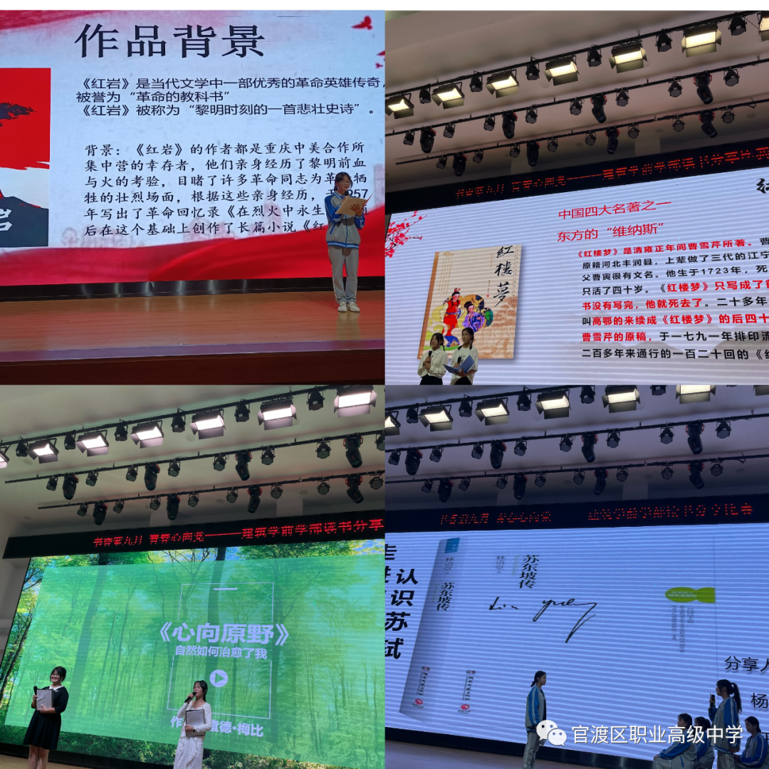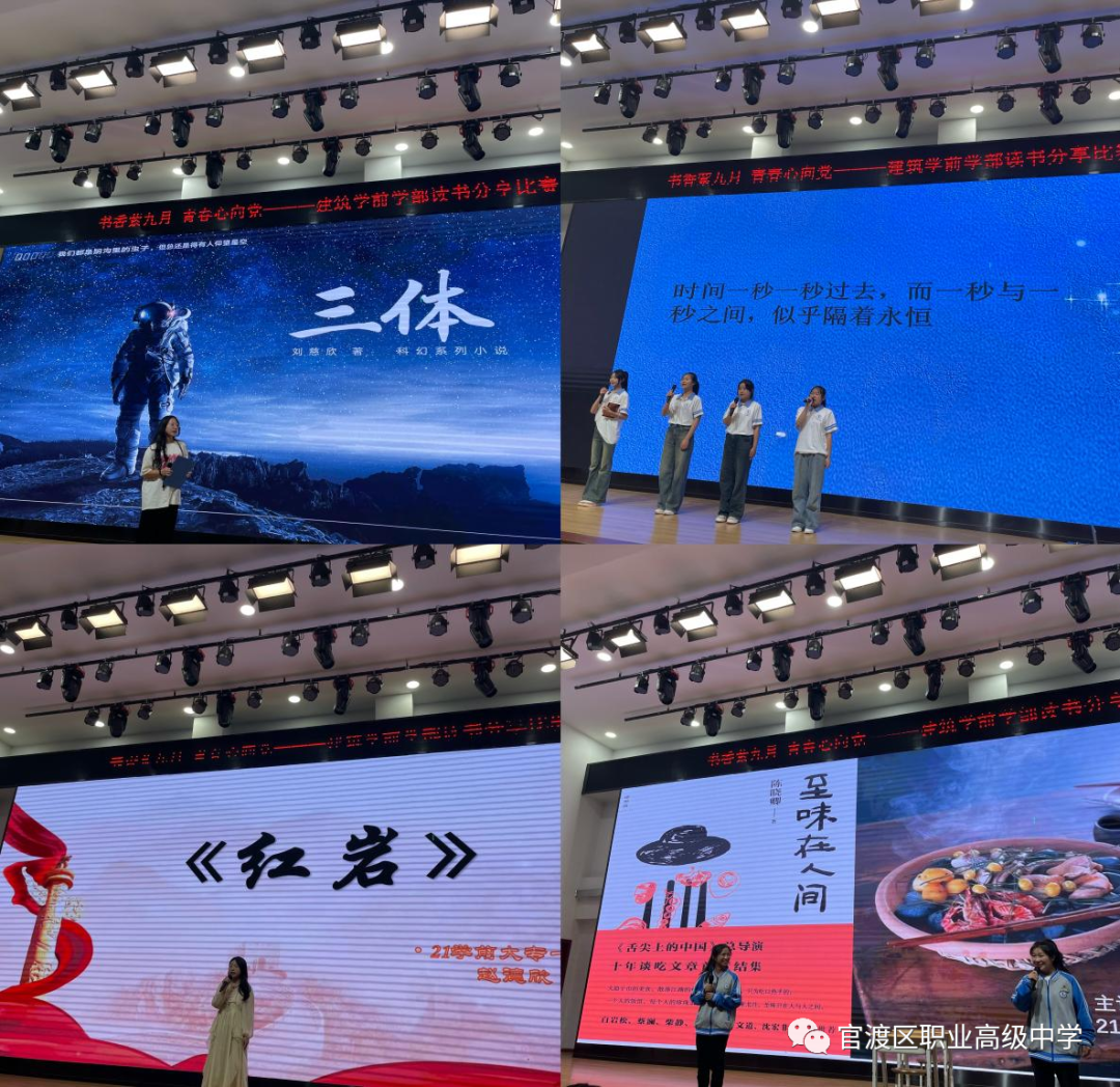 在读书分享比赛中,选手们各书己“荐”。他们精神饱满,感情深挚分享了他们对阅读《红楼梦》、《苏东坡传》、《活着》、《三体》、《红岩》等经典名著的感悟,他们用多样的形式,丰富的内容展示着“阅读之美”。