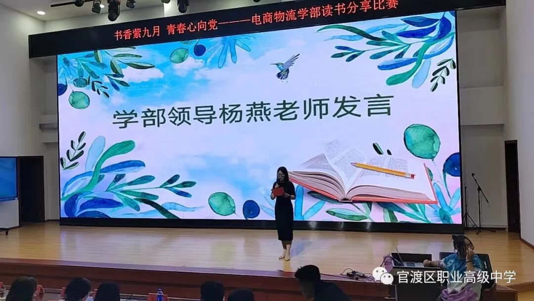 最后杨燕副校长为读书分享会做点评,肯定了选手们精彩的读书分享,并殷切地提出希望:希望同学们能把阅读的好习惯带回教室、带回宿舍、带到校园的每一个角落,让书声响彻校园,让书香溢满官职中;希望同学们能够大胆阅读,广泛阅读,与经典同行,打好人生底色,同名著为伴,塑造美好心灵。