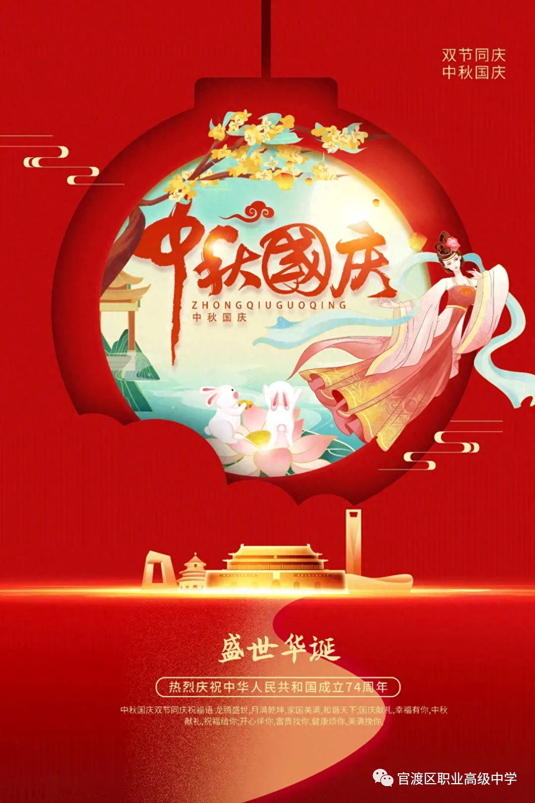 “每逢佳节倍思亲”!值此中秋、国庆双节来临之际,学校向在外岗位实习的同学们,并通过你们向您的家人、朋友表示亲切的慰问和良好的祝愿!月是期盼,月是牵挂;月是幻想,月是浪漫;月是思念,月是圆满。