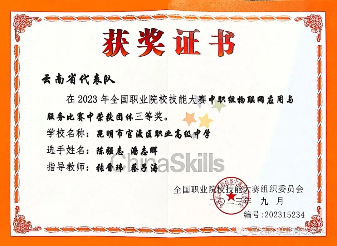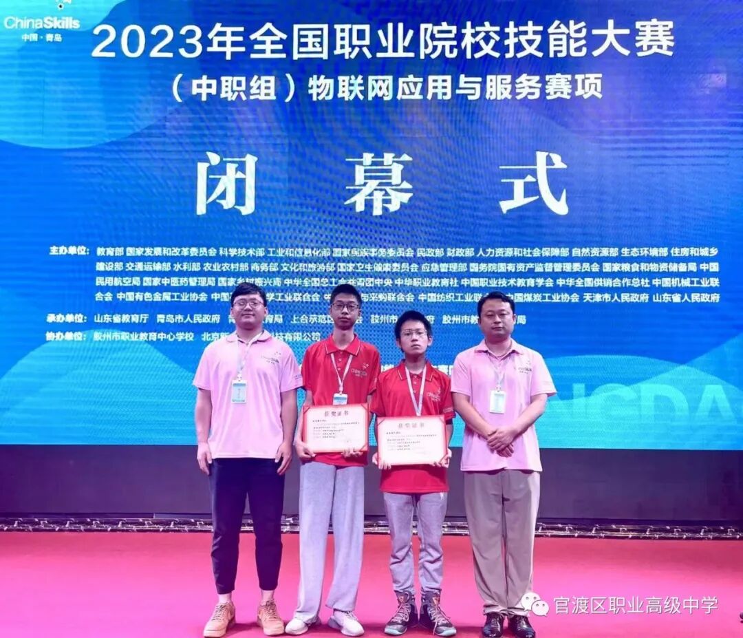 日前,2023年全国职业院校技能大赛(中职组)物联网应用与服务赛项在山东省青岛市胶州市职业中心学校落下帷幕。我校学生陈强志、潘志辉在张晋玮老师和蔡子涛老师两位老师的带领下参加了2023年全国职业院校技能大赛物联网应用与服务赛项并荣获团体三等奖。