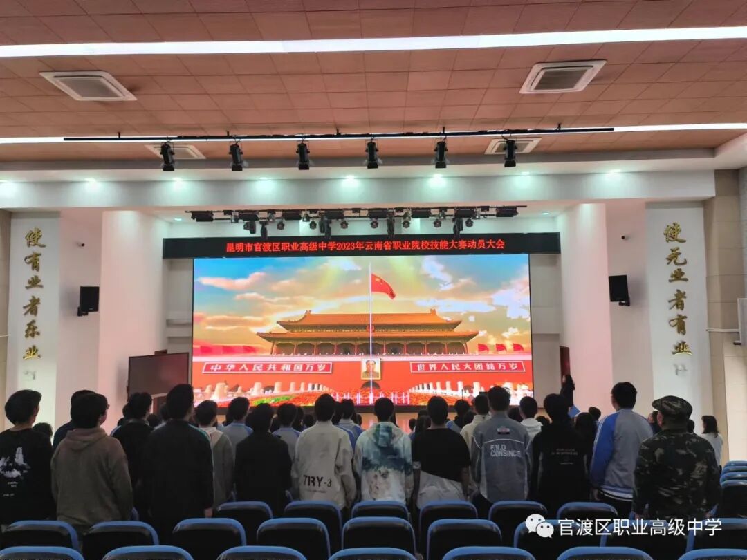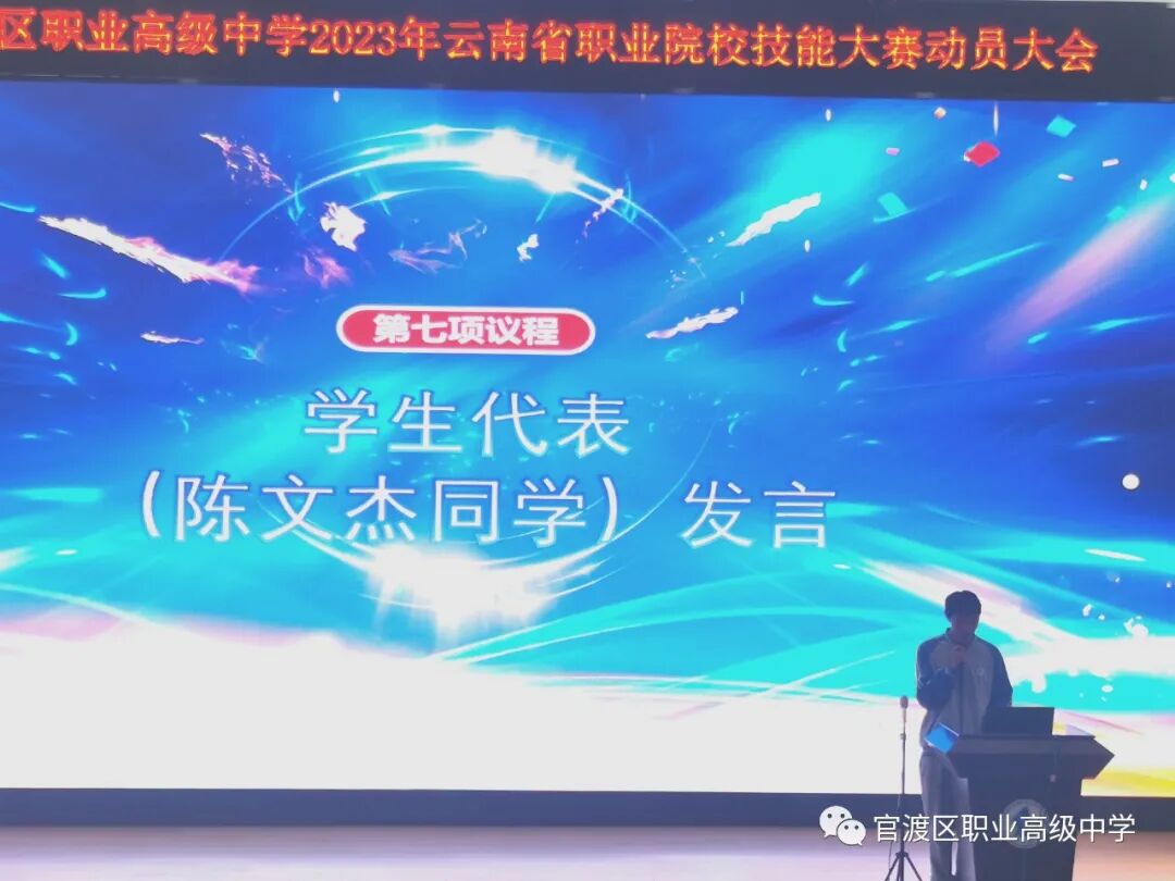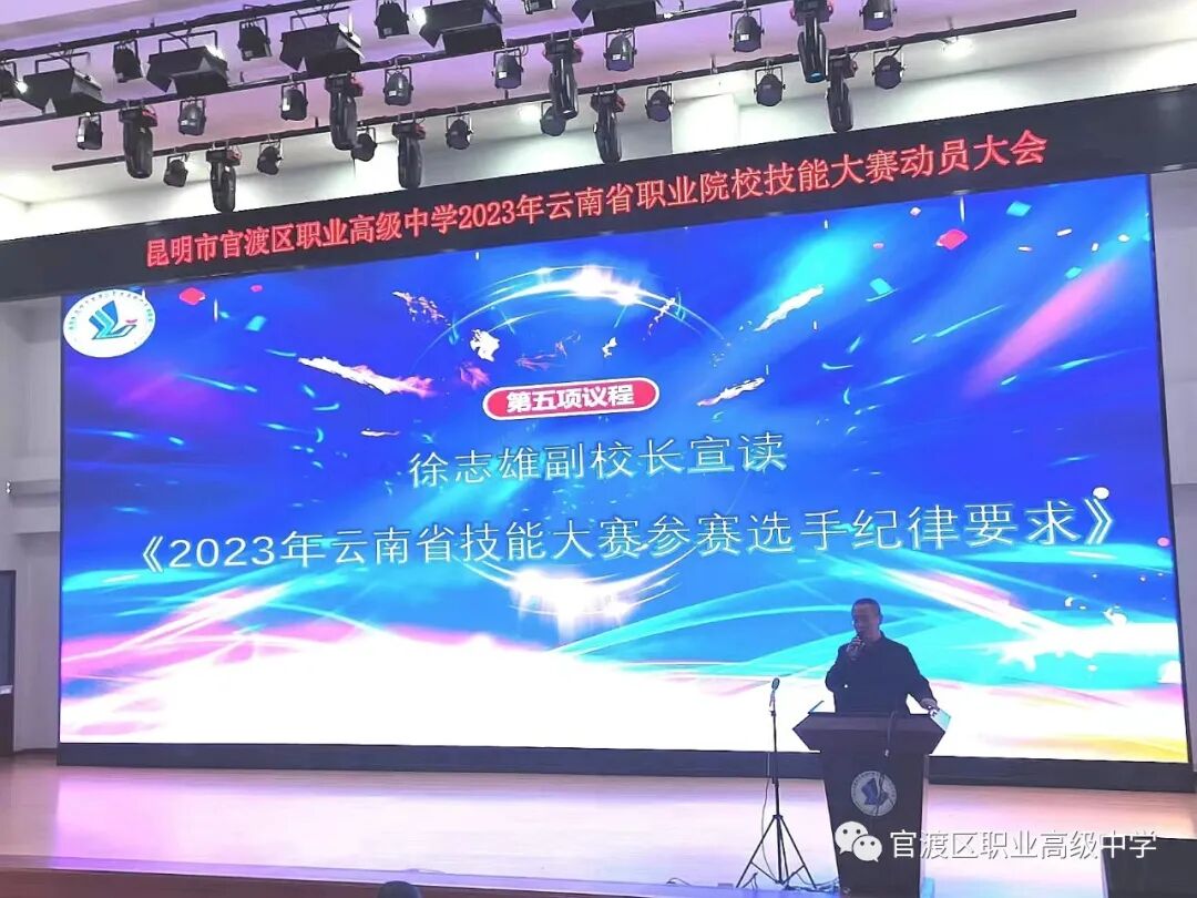 号角已经吹响,征途就在脚下!风劲潮涌,自当扬帆破浪,任重道远,更需策马扬鞭。本次动员大会在各位领导、老师、同学们的参与下圆满结束,预祝我校师生在2023年云南省技能大赛中展示出官职师生:阳光、自信、灿烂、团结的良好形象,取得优异成绩,再创辉煌!