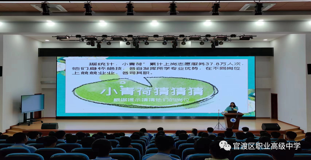 活动伊始,陈晓艺老师通过几段视频引出“小青荷”志愿者们,“青荷”寓意亲和,代表着志愿者亲和力的微笑。陈晓艺老师引用“小青荷”志愿者们的故事讲解,增强同学们服务和奉献社会的意识,告诫青年要承担责任,积极参与社会公益活动,热爱劳动,爱岗敬业,努力做好“志愿者”中的“志愿者”。