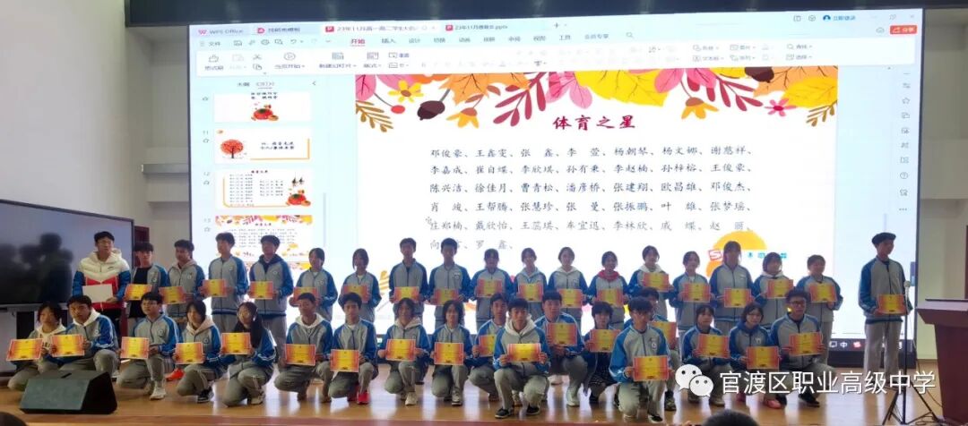 为表彰期中考成绩优秀的学生,分享学习经验,总结学生工作,并鼓励全体师生继续努力,为接下来的教与学活动注入新的活力。官渡区职业高级中学综合高中学部高一高二年级全体师生于2023年11月23日在任之厅召开期中考表彰暨德育工作总结会。