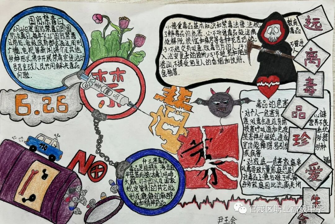 远离毒品,别让生命提早画上休止符!本次禁毒作品征集活动,这次比赛不仅提高了同学们的禁毒意识,了解到毒品所带来的危害,还通过他们的创新能力对禁毒知识起到一个宣传作用,让更多的同学重视毒品危害,远离毒品。这些获奖作品既是对禁毒知识的生动传播,也是对参与者积极参与宣传禁毒活动的肯定!坚决抵制毒品,青春健康护航!