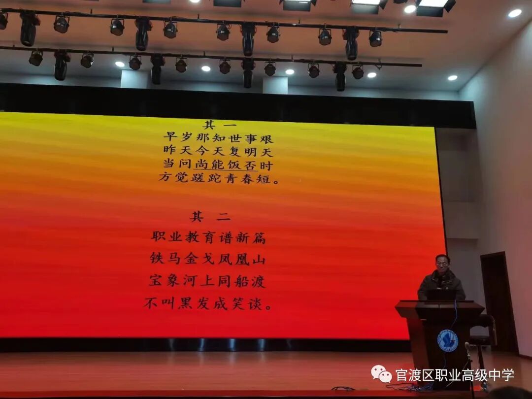 为总结综合高中学部本周工作及促进学部发展,官渡区职业高级中学综合高中学部于2023年12月8日在任之厅召开学部会议,开展了高中部第二次综合大讲堂,本次主讲戴修锰老师分享了在昆明市官渡区职业高级中学高中部的工作经历与感悟,让大家受益匪浅。