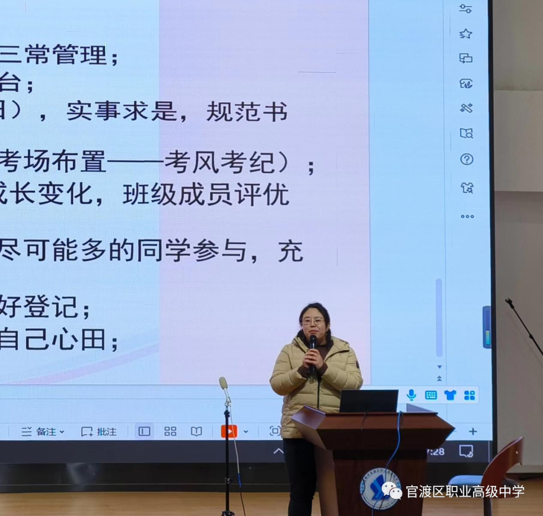 德育处讯:为进一步加强班主任队伍建设,充分发挥班主任在学校教育工作中的重要作用,及时总结和推广班级管理经验,切实提升班主任的专业素养和管理水平,2023年12月12日下午,官渡区职业高级中学班主任大讲堂第46讲如期在任之厅举行,杨秋副校长、各学部德育干事及学校全体班主任参会,培训由德育处主任何平华主持。