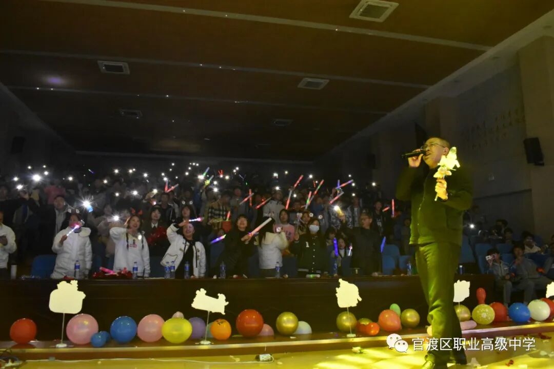星星点灯,照亮校园的夜空;星星点灯,敲响青春的时钟;星星点灯,照亮生命的旅程;星星点灯,唱出心灵的歌声。特邀嘉宾,徐志雄副校长一首《星星点灯》,点亮青春梦想。其歌声激情澎湃,荡气回肠,引发全场共鸣,现场气氛达到高潮!