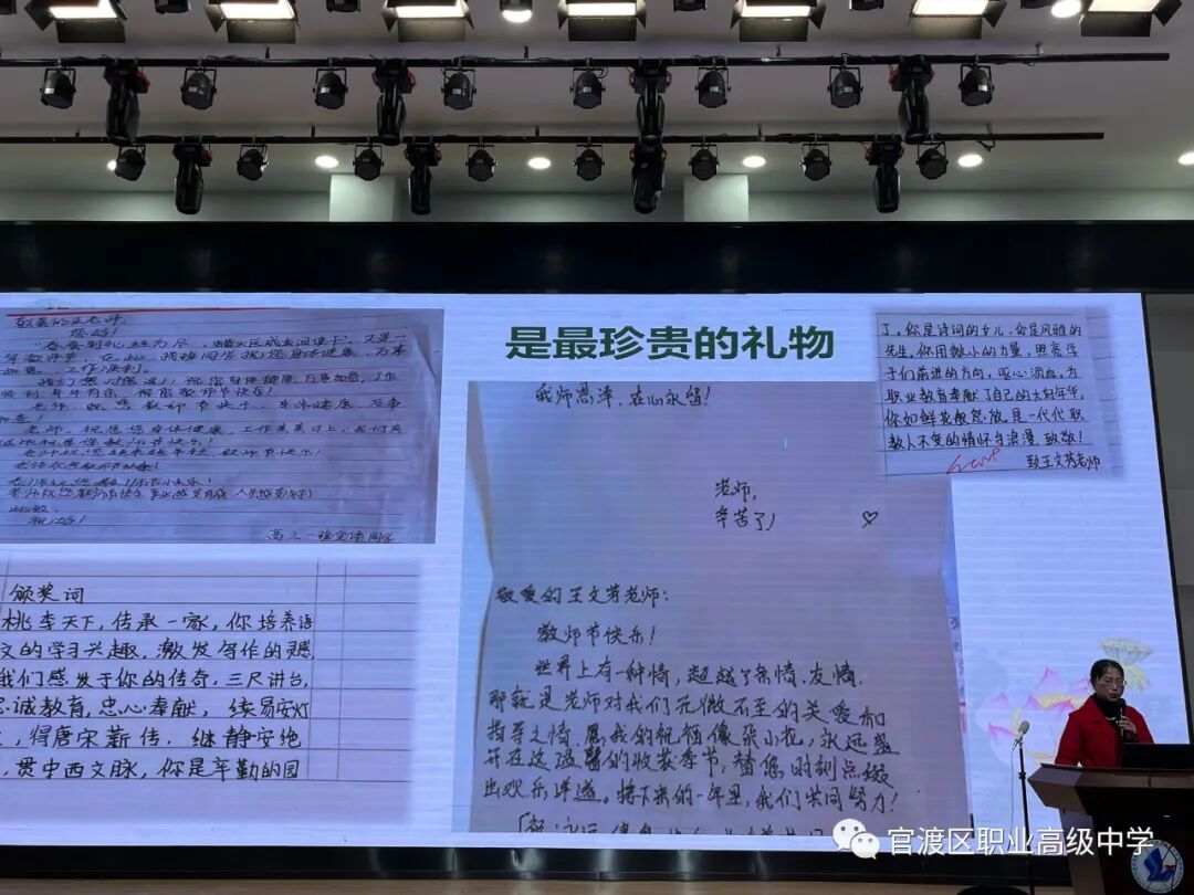 学生们期待的眼神,永远是教师这个职业最大的幸福感来源。把讲台让给学生,让他们体会教学的困难的同时,也会让他们从分享中感受到学习的乐趣。把舞台让给学生,丰富的活动让学生拥有了施展才华的场所,或许你从未想到过他们的思想与创造力会给你带来如此的惊喜。和学生们一起成长,一起收获,或许就会在不经意间收获感动,“紧握粉笔的手,总能让每一种颜色盛开,多谢您如此耀眼,做我们平淡岁月里的星辰”这些来自学生的真诚问候或许就是坚守的理由。