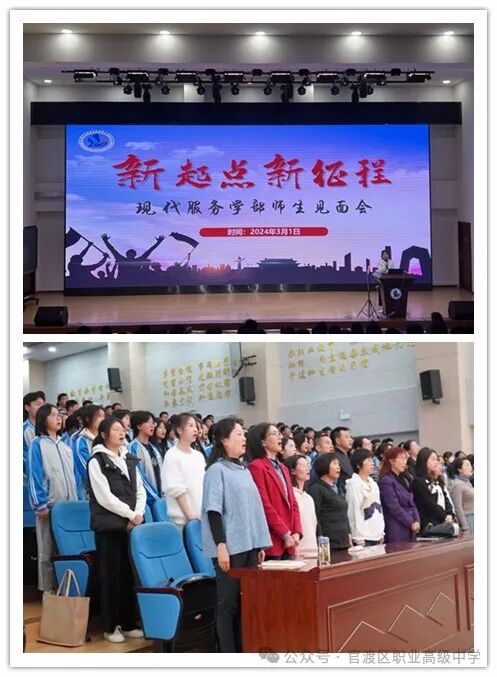 遇见,是故事的开始;相处是温暖的篇章;陪伴是简单的告白;成长是故事的延续。2024年3月1日下午1点30分,现代服务学部的全体师生们齐聚学校任之厅开展师生见面会。此次见面会由尹倩老师主持,伴随着师生们嘹亮的国歌声,见面会拉开了帷幕。激昂的旋律,让我们感受到了师生们的团结和力量,感受到了现代服务学部这个大家庭的温暖和希望。