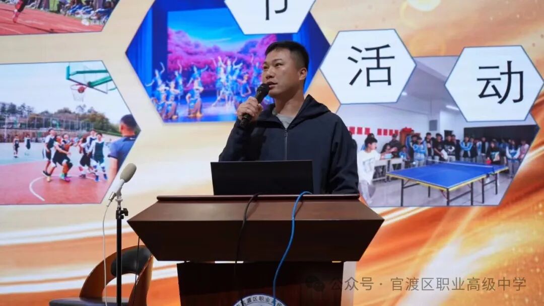 之后,是德育干事李响老师发言。李老师依据学校“周周有活动,月月有主题”的德育理念,向大家介绍了学部特色活动课程以及学部自主管理委员会,希望同学们能够根据自身情况,发挥自己的特长,不断提升自己。