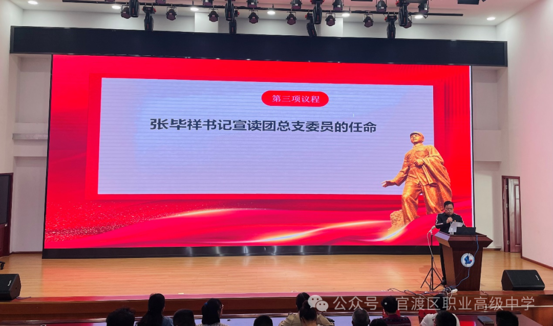 第三项议程:张毕祥书记宣读团总支委员的任命。张书记强调党建带团建可以引导青年树立正确的世界观、人生观和价值观,培养他们积极向上的精神风貌,增强他们的社会责任感和奉献精神。