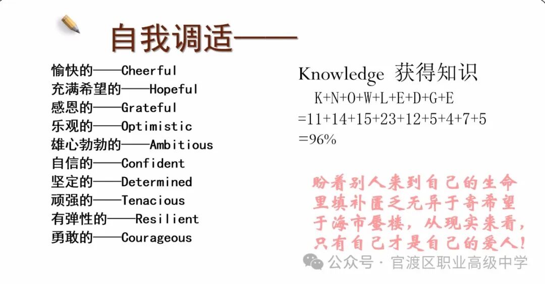 在自我调适活动中,老师们按照要求找到理想的状态的词汇,提升自己的主观幸福感。