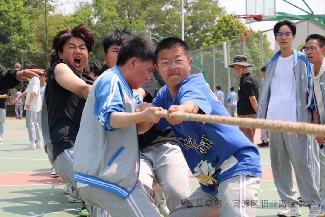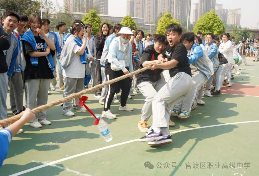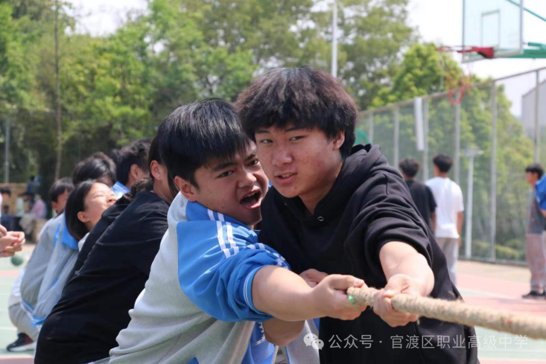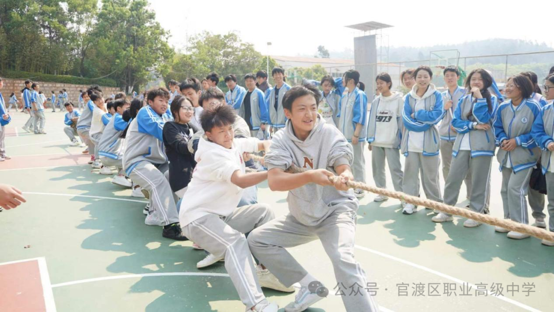 本次比赛共有18个班级的360名同学代表和10余名教师代表参加,赛事采取三局两胜淘汰赛的方式,高一高二两个年级同时进行。随着裁判员一声哨响,比赛正式开始,双方队员迅速进入状态,紧握绳索,全力以赴地向后拉拽。