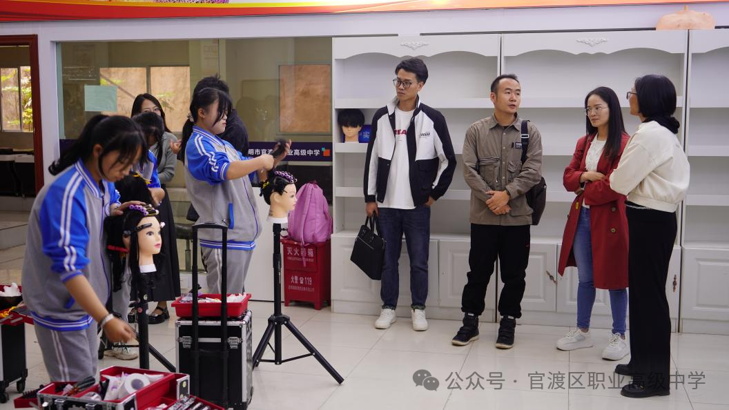 随后一行人观摩了我校综合高中学部的数学课及现代服务学部的美发与形象设计专业实训课,课后在会议室召开座谈会。会议上,徐志雄副校长首先对我校综合高中的办学经验、职教高考教学管理、教科研工作等方面进行了介绍,双方对此展开了深入交流,并就职教高考改革、教学内容更新、技能竞赛、数字化校园建设等方面进行了更深入广泛的探讨。玉溪技师学院领导李富春对我校教育教学各项工作表达了充分的肯定与赞扬,表示希望借鉴我校的先进经验和做法,加强双方的交流与合作,共同推动云南省职业教育的发展不断迈上新台阶。