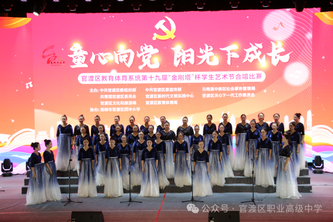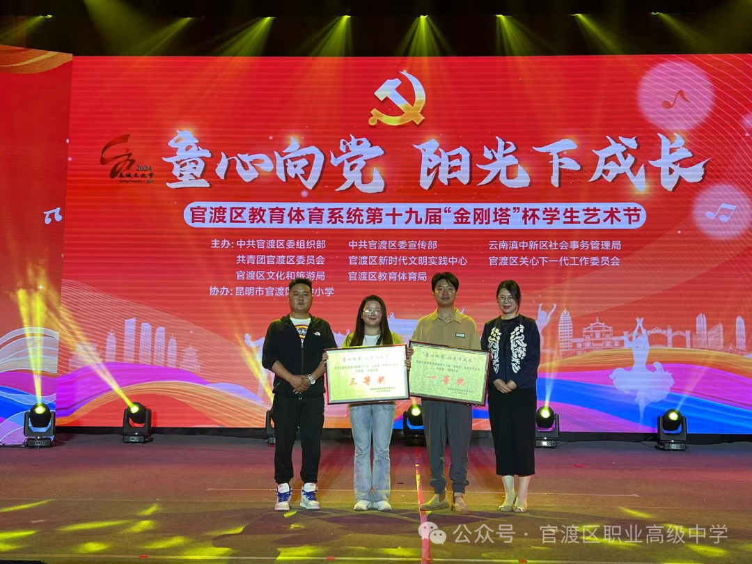 2024年5月11日, 官渡区教育体育系统第十九届“金刚塔”杯学生艺术节比赛落下帷幕,官渡区职业高级中学参演的群舞节目《尼莎妈妈的歌谣》喜获一等奖、合唱节目《当我们小的时候》和《白衣飘飘的年代》喜获三等奖!