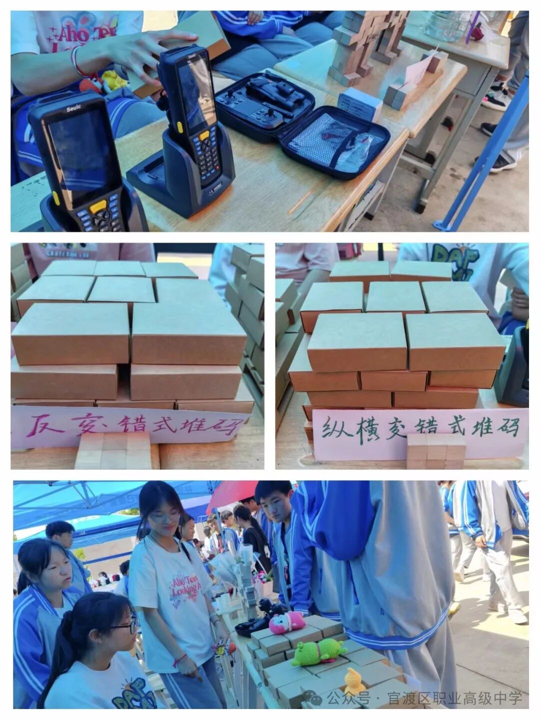 物流专业作品展示有托盘堆码方式如(正反交错式、旋转交错式、重叠式、纵横交错式)、无人机、RFID手持终端、电子标签辅助拣货系统多种体验的物流设备,物流随着全球化的深入发展,物流行业已经成为了现代经济的核心组成部分。它不仅关乎商品和服务的流通,更是连接全球各地经济活动的动脉。从农田到餐桌,从工厂到商场,从城市到乡村,物流无处不在,无声无息地支撑着我们日常生活的方方面面,同学们也因尝试了物流的堆码体验得到了相应的奖励。