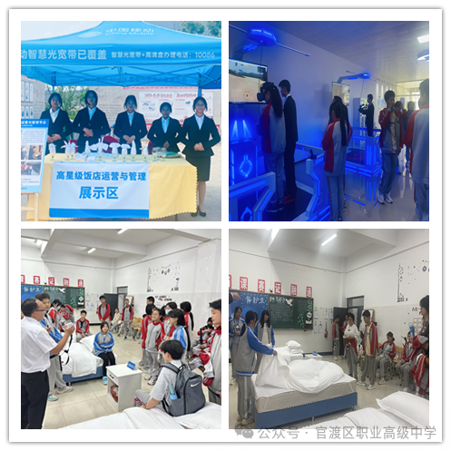 为了此次职教体验活动,现代服务学部紧罗密布的进行了安排和部署,从带领参观学校到专业介绍再到活动体验多方位安排相关老师进行接待。2024年5月16日,学校共接待了云南省昆明市第十二中学、昆明市官渡区昆十二中云子学校、昆明市官渡区云大附中星耀官渡学校、昆明市第十二中学(环湖校区)、矣六实验学校等11个初中学校的517名学生到我校进行职教体验活动。