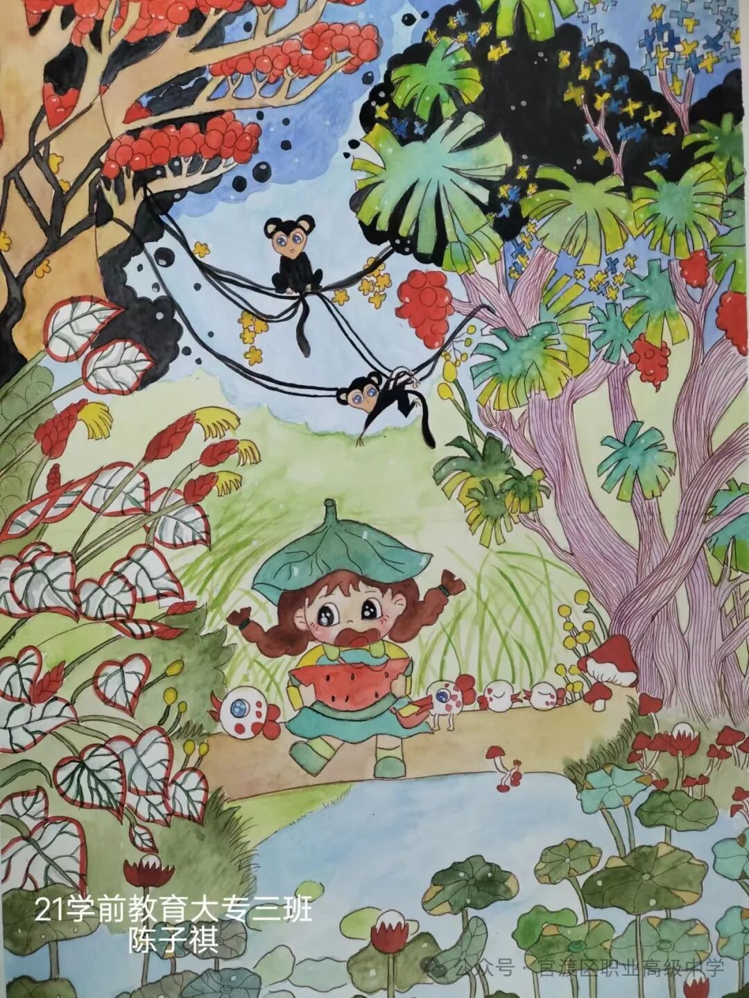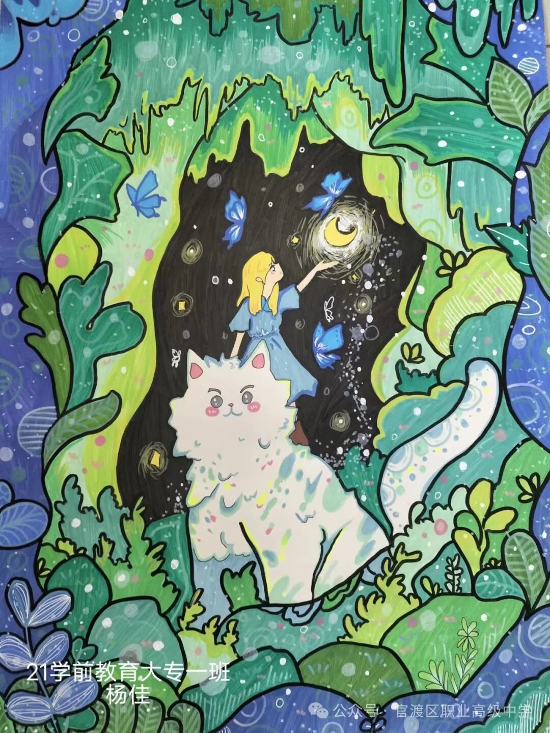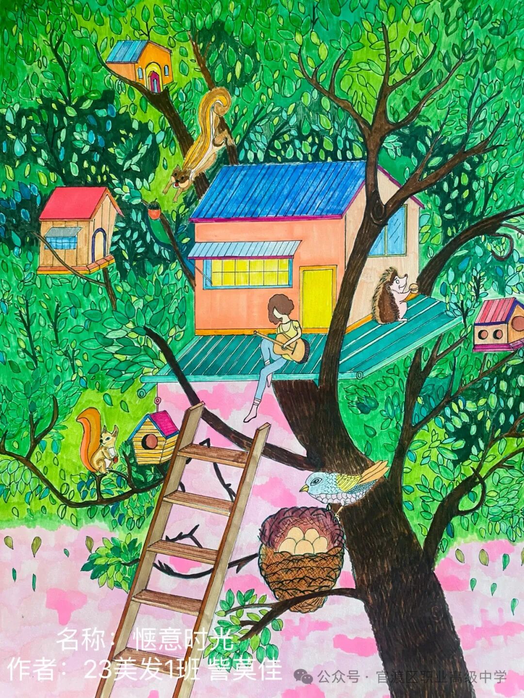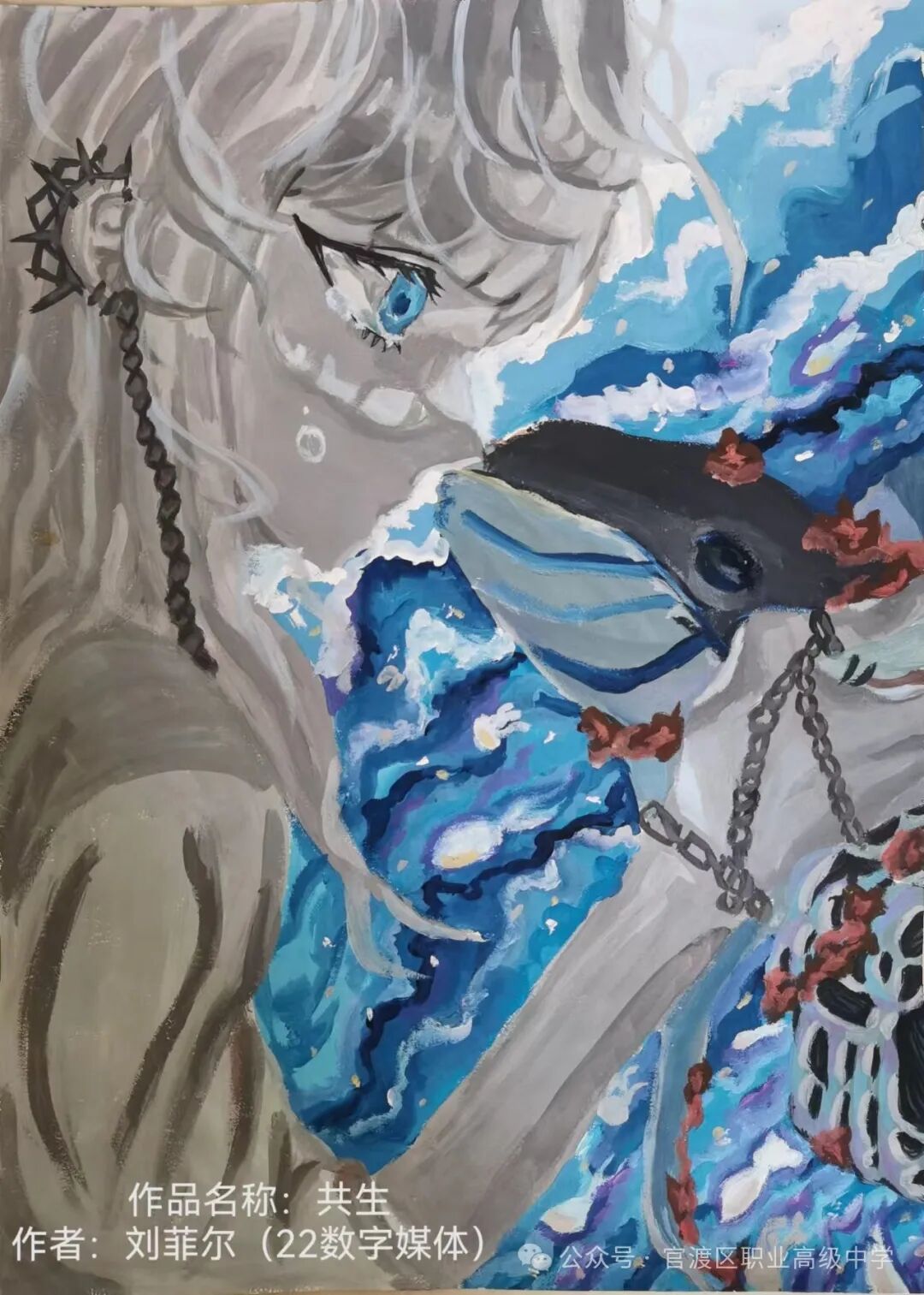我们精选的40多份绘画作品,如同春天的使者,带着色彩与光影,向我们走来。这些作品涵盖了水彩、油画棒、马克笔、丙烯等多种艺术形式,艺术是梦想的翅膀,而梦想是艺术的灵魂。在这些作品中,学生们不仅展现了他们对艺术的理解和掌握,更重要的是,他们通过艺术表达了对未来的憧憬和梦想。无论是对职业理想的追求,还是对美好生活的向往,每一幅作品都是他们心中梦想的缩影,是他们对未来的无限遐想。