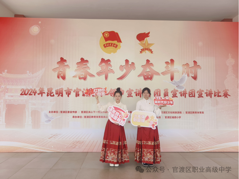 2024年5月23日至24日,来自昆明市官渡区71所学校的少先队、团员代表汇聚福德小学进行宣讲比赛。经过激烈的角逐,我校团员代表戚蝶、李雨韩带来的节目《千年铜艺里的工艺传奇》荣获三等奖。