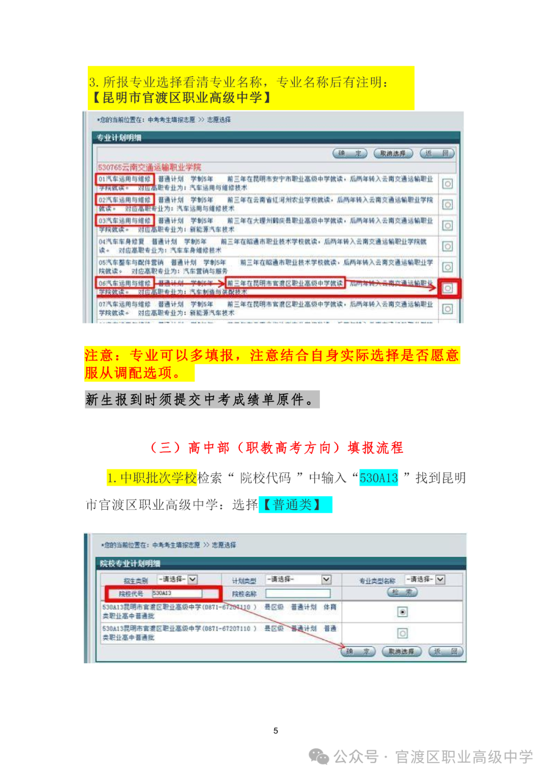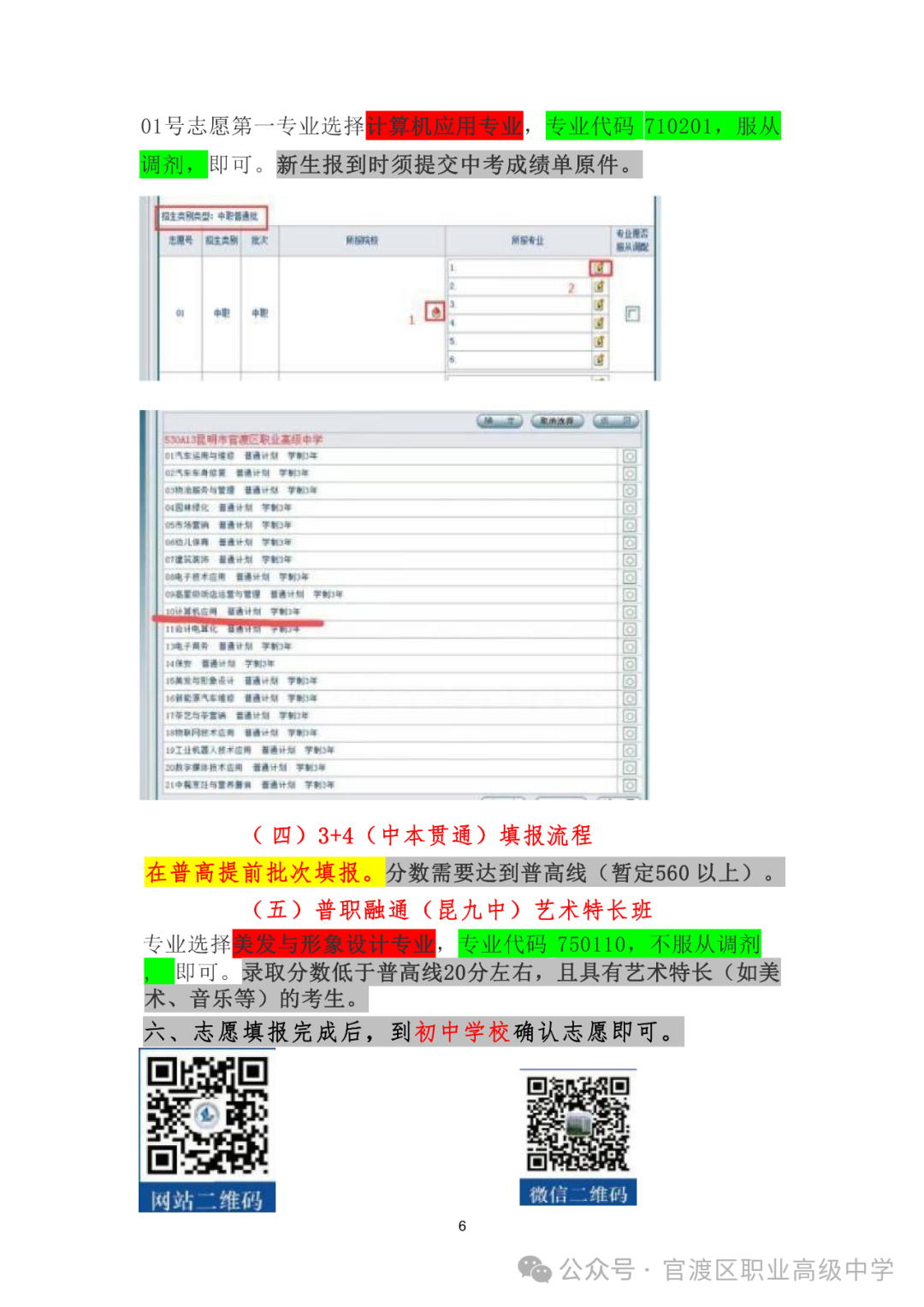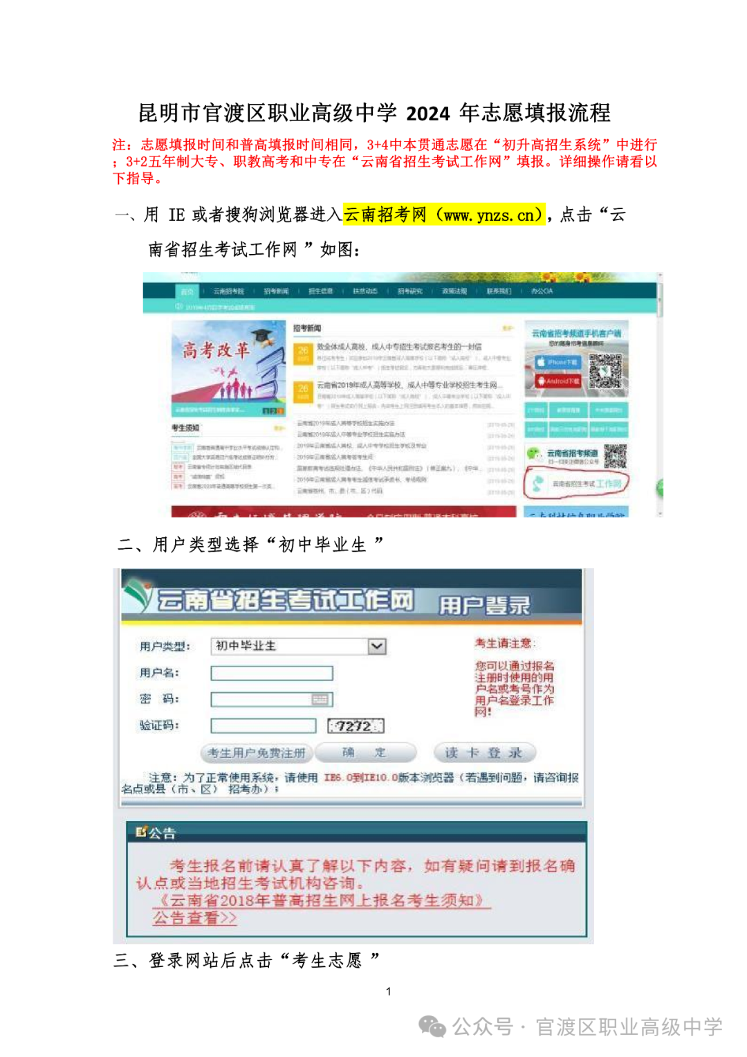 昆明市官渡区职业高级中学2024 年志愿填报流程
