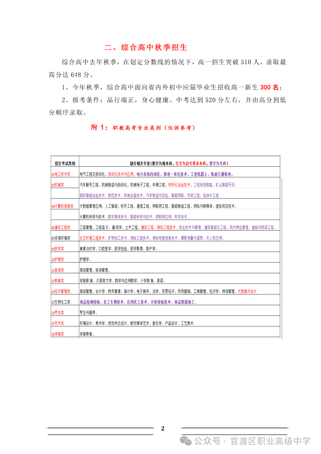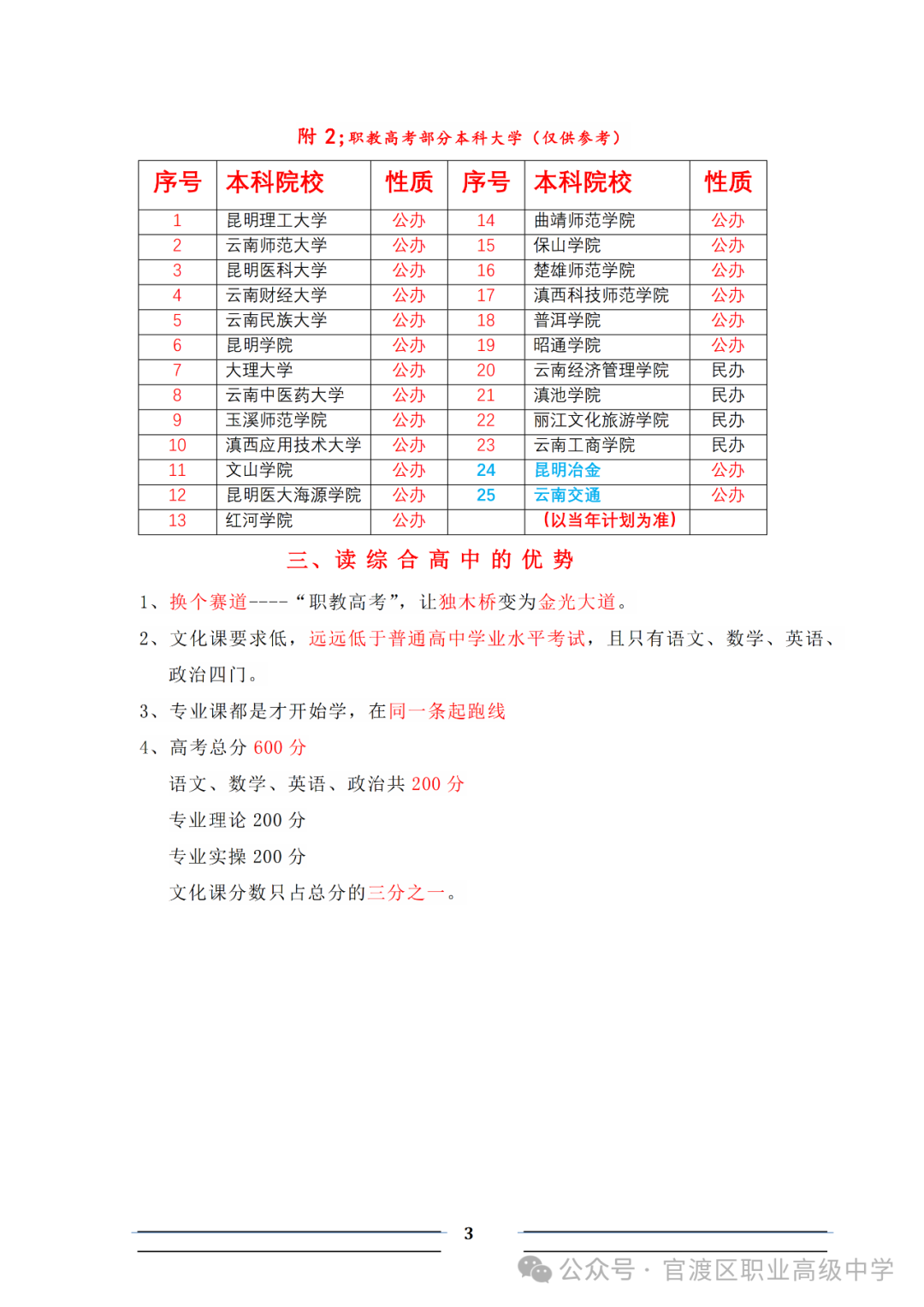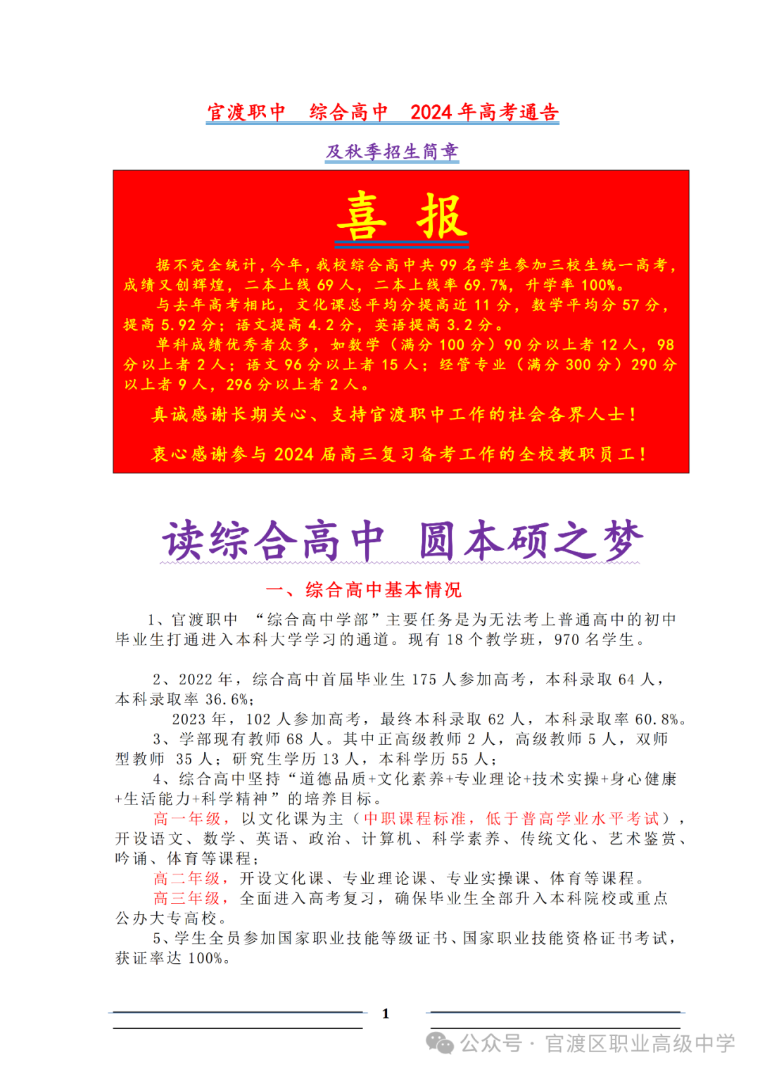 官渡职中综合高中2024年高考通告及秋季招生简章