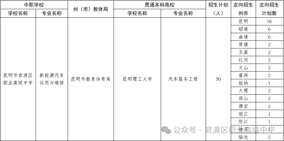 中本贯通——2024年昆明市官渡区职业高级中学与昆明理工大学“3+4”中本贯通招生简章