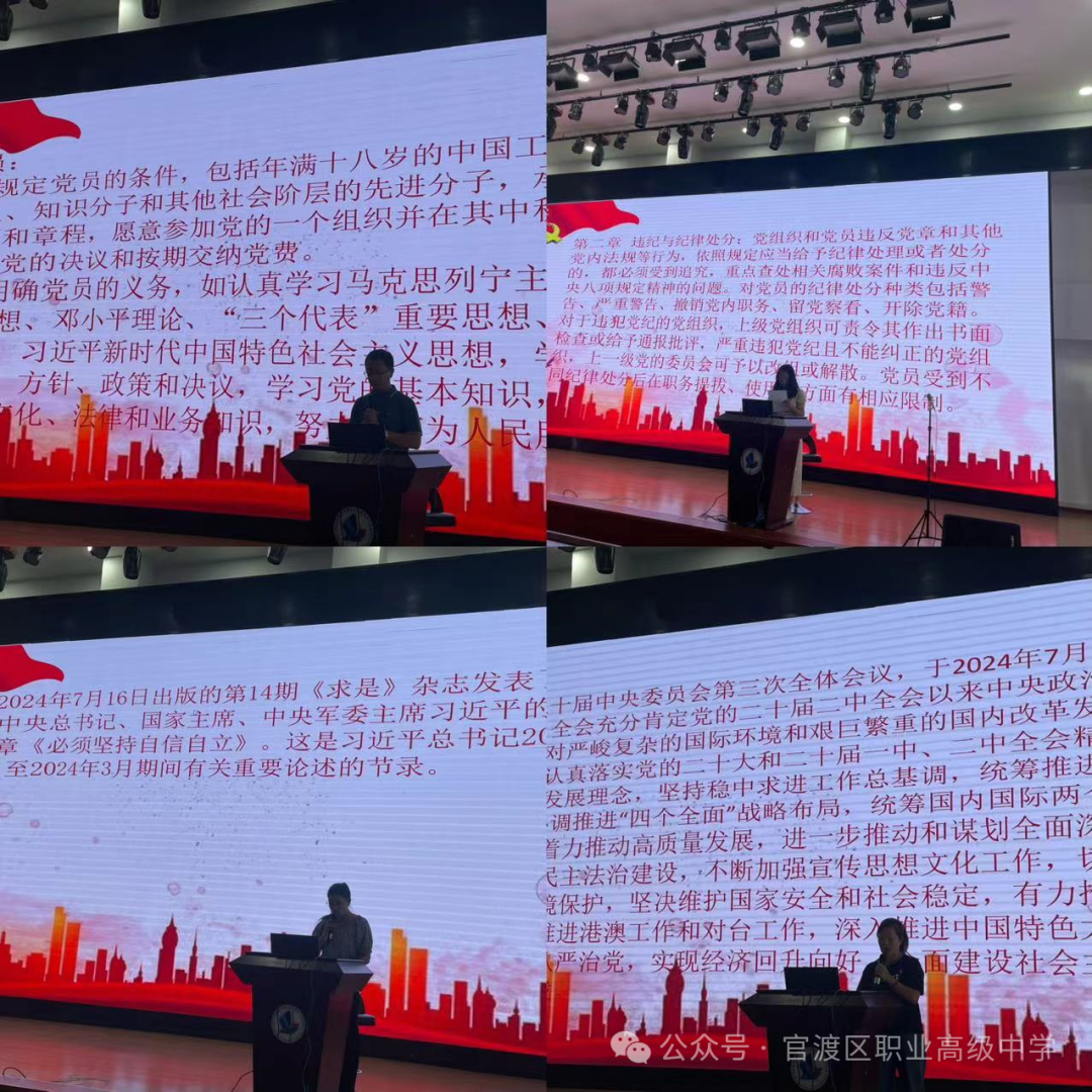 思想理论阶段的学习分别学习了《中国共产党章程》《中国共产党纪律处分条例》节选内容;学习习近平总书记在《求是》杂志发表的重要文章《必须坚持自信自立》和中国共产党第二十届中央委员会第三次全体会议公报节选内容。全体党员学习了习近平总书记关于意识形态工作的重要论述,要推进中国式现代化,必须坚持独立自主、自立自强,坚持把国家和民族发展放在自己力量的基点上,坚持把我国发展进步的命运牢牢掌握在自己手中。