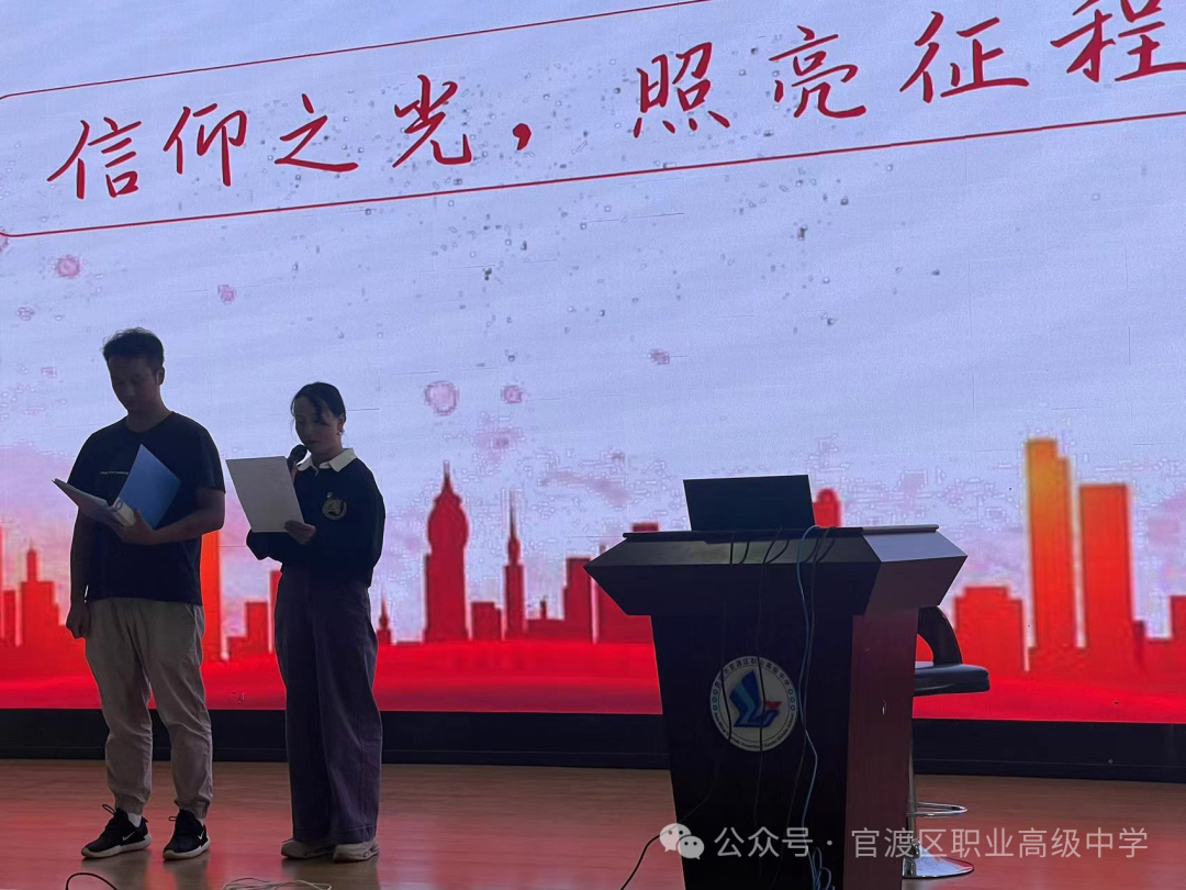 李波同志、缪希同志为大家朗诵《信仰之光,照亮征程》。坚如磐石的信仰、坚不可摧的信念、坚贞不渝的忠诚,引领中国共产党披荆斩棘、砥砺前行。