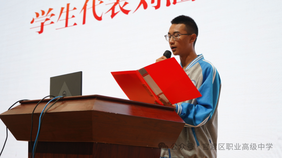 仪式的最后,学生代表刘涵同学上台发言。他代表“3+4”中本贯通班的全体同学,向在座的各位领导、老师和家长表达了诚挚的感谢,并分享了自己进入中本贯通班学习的感受以及对未来的期待。刘涵同学表示,同学们将珍惜这次宝贵的学习机会,以饱满的热情投入到每一天的学习中,努力成为德、智、体、美、劳全面发展的新时代青年。