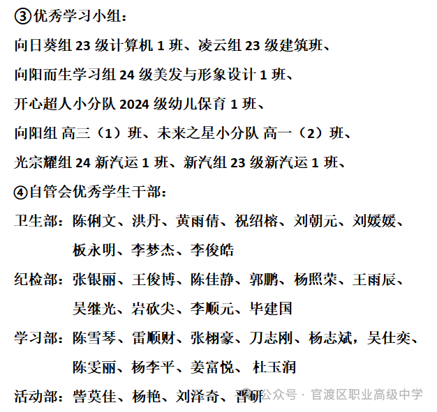 九月份以来,德育工作稳步开展、活动丰富多彩,按照班级自荐、学部推荐、德育处审查的程序,涌现了一批先进个人和先进集体。鉴于此,2024年10月14日上午,官渡区职业高级中学特举行“榜样引领 阔步向前”——九月争先创优表彰暨周一升旗仪式。升旗仪式
