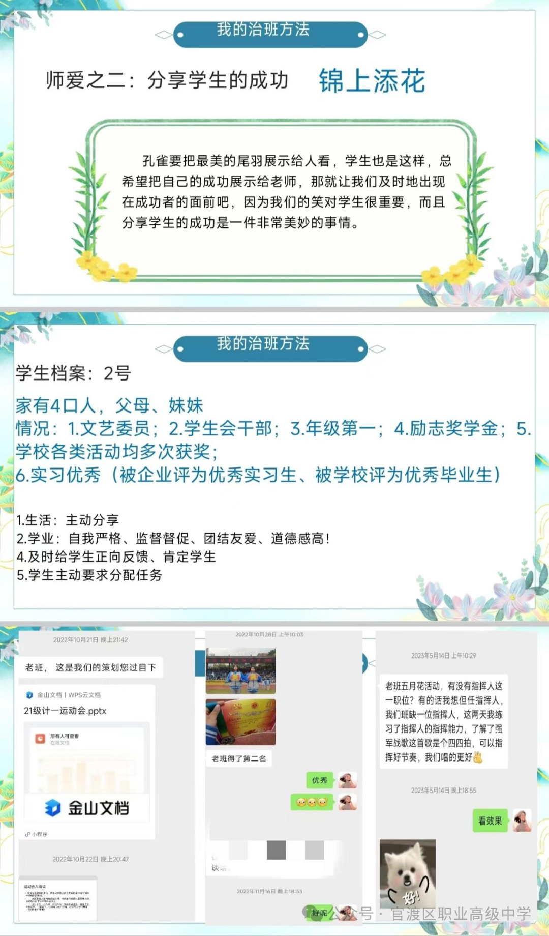 独行者步疾,结伴者行远。相信通过交流分享、智慧引领,在未来的工作中,官职的班主任们必将满怀热情、凝心聚智,为学生的全面发展保驾护航;定能心有山海、追光而行,用爱与责任谱写我校高质量发展的新篇章!